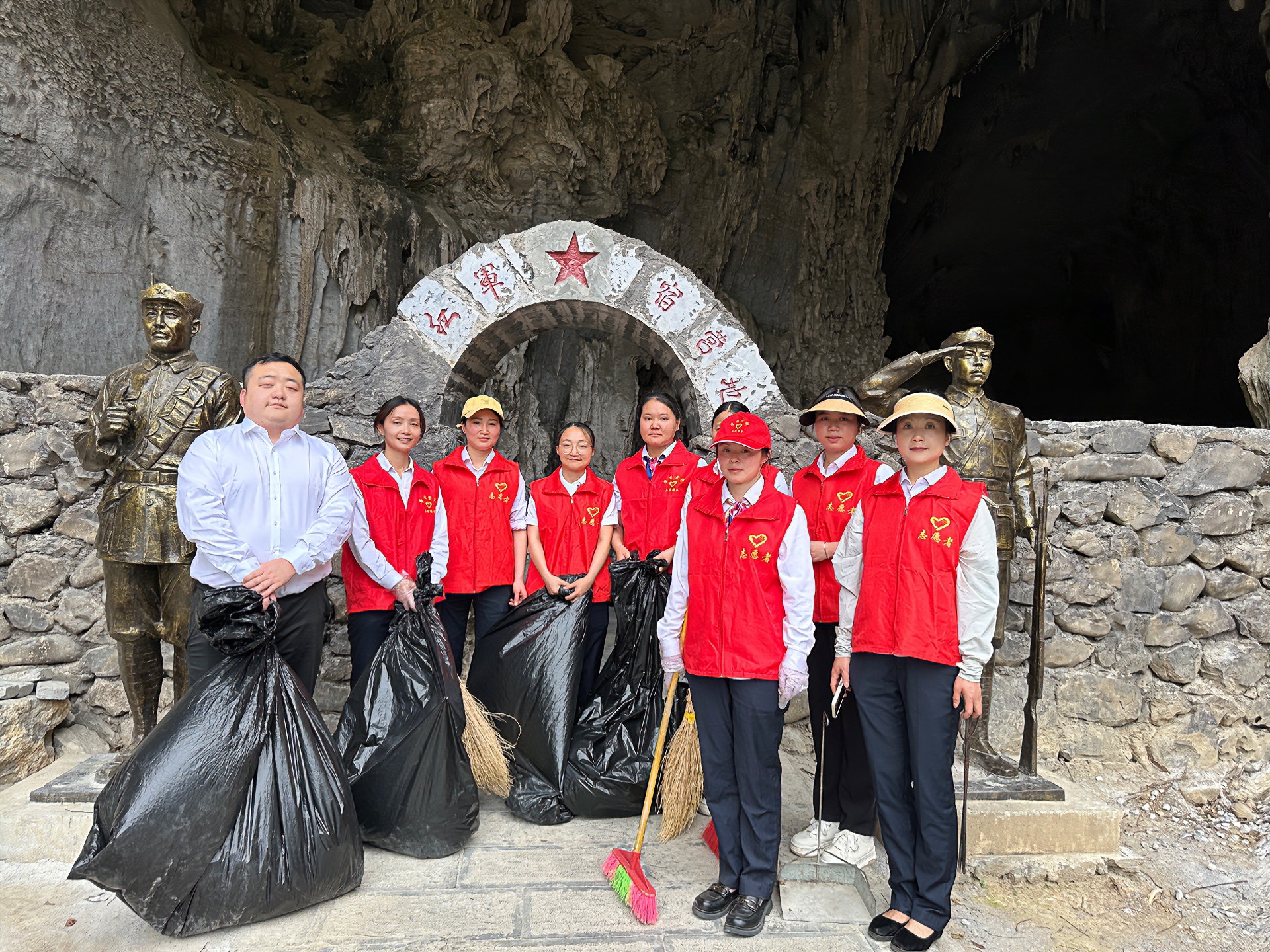 活动当天,志愿者手持夹子、垃圾袋等工具,分组有序地行动起来,重点对红军洞景区的步道、观景台、停车场等区域进行了垃圾清理,同时也不放过草丛、石缝中的烟头、纸屑等细微之处。历经一小时的辛勤劳动,景区恢复了原有的庄严肃穆。