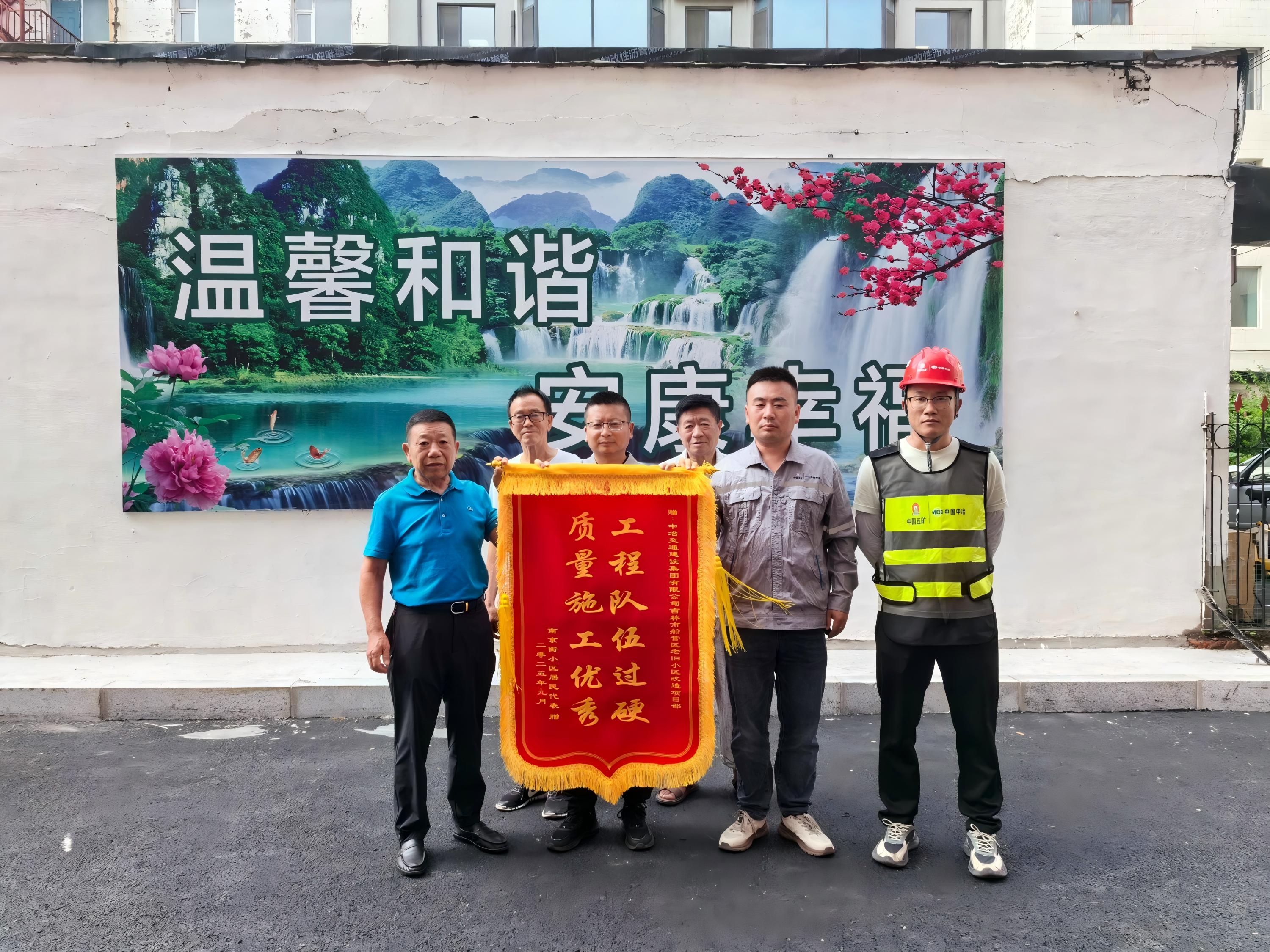 9月1日下午,吉林市船营区南京街小区内洋溢着融融暖意。居民代表将一面绣有“工程队伍过硬 质量施工优秀”的锦旗郑重交到华北分公司老旧小区改造项目部及二工区负责人手中,以此感谢施工团队以匠心精神让这座承载着30多年岁月沉淀的老小区重获新生。
