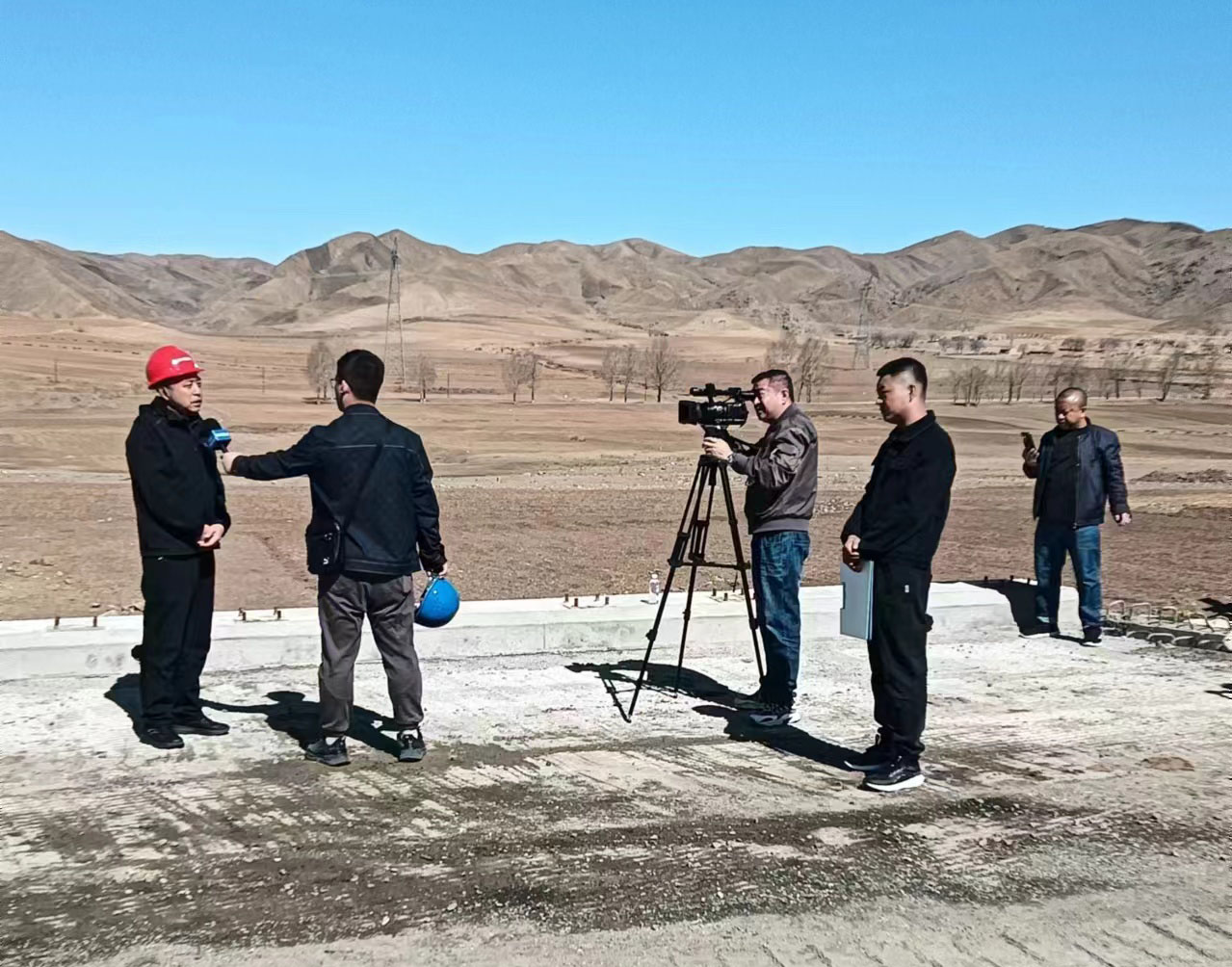 4月16日,内蒙古广播电视台《都市全接触》在中冶交通承建的WYSG-03合同段水稳底基层摊铺现场,对项目施工进展情况进行了专题报道,建设管理办公室主任王智德对项目进展进行了详细的讲解。