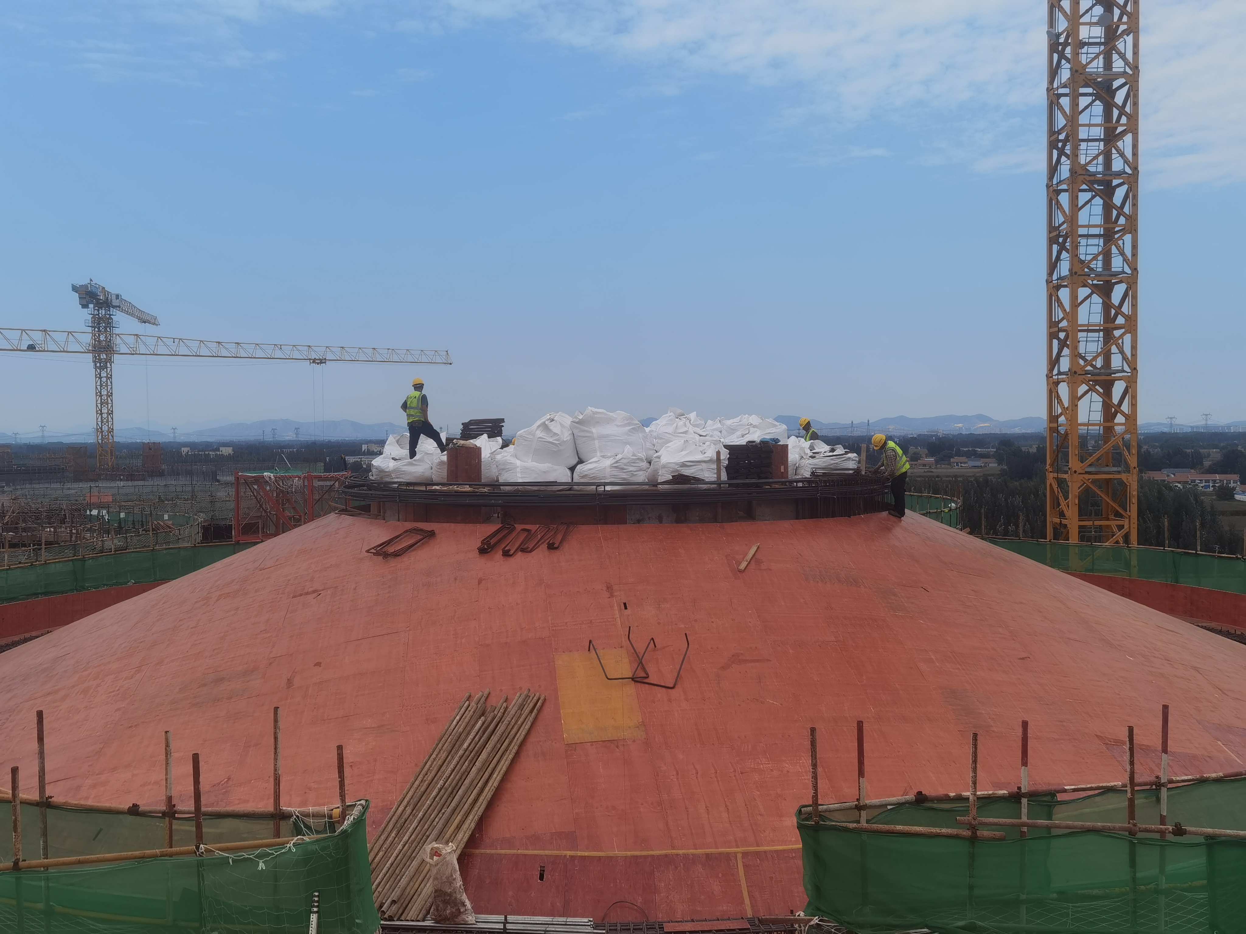 浅圆仓仓顶结构跨度大、施工难度高,其支撑架体的承载能力与稳定性是决定施工安全与质量的核心。该项目合同内容共有22个浅圆仓施工工程。为确保万无一失,项目团队采用“提前预压”的检验方法,在仓顶正式混凝土浇筑前,通过分级加载对满堂支撑架体进行了系统性预压,模拟满载工况,科学检验其承载力与变形。