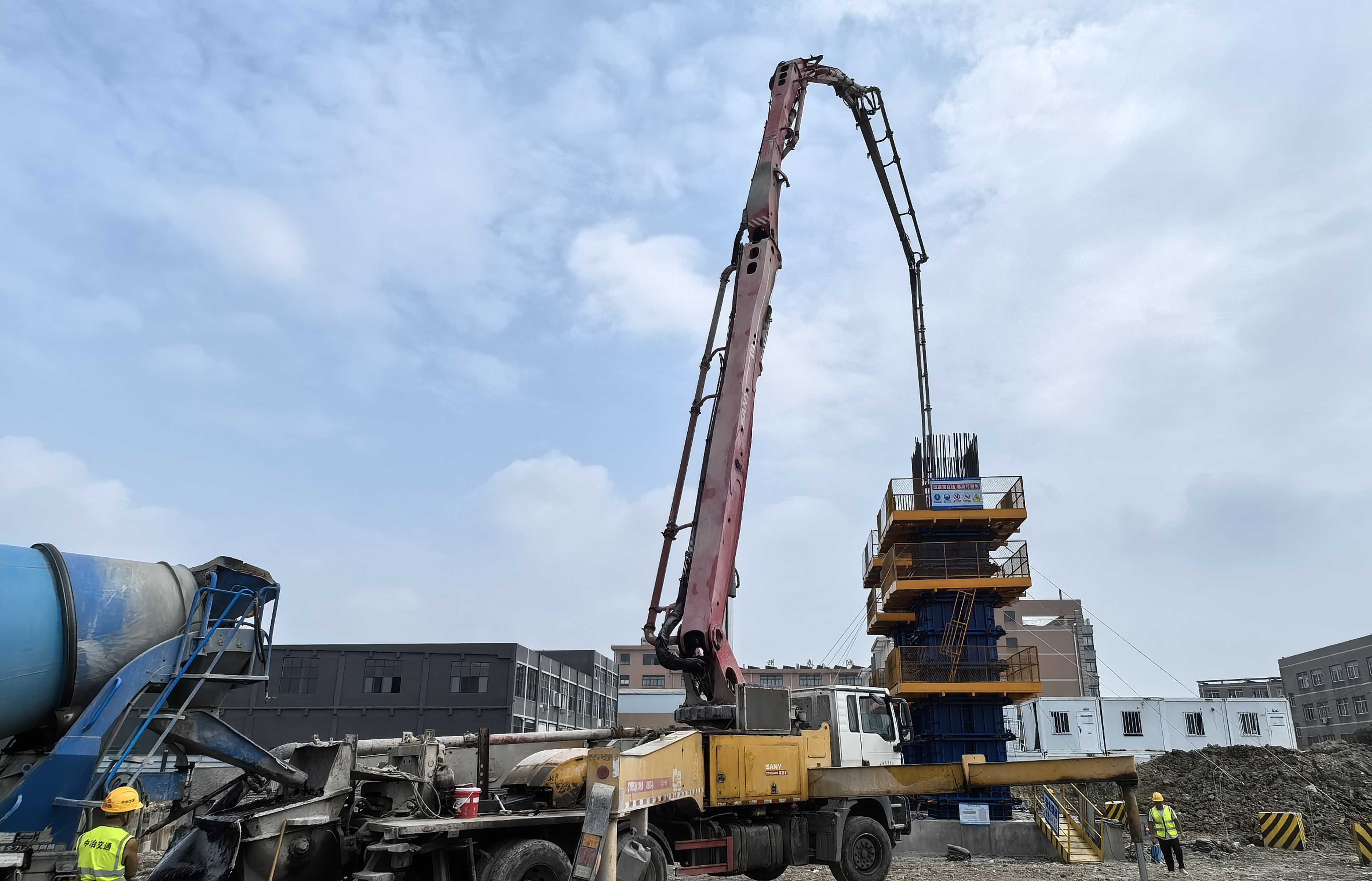 该项目共计划建设墩柱514个,其中高度超过15米的墩柱102个,主要类型包括方柱墩、花瓶墩和圆柱墩。本次施工的首件墩柱为主线高架桥315#墩,采用两个1.9米×1.9米扩头方墩,高度8.674米,钢筋骨架一次预埋成型。
